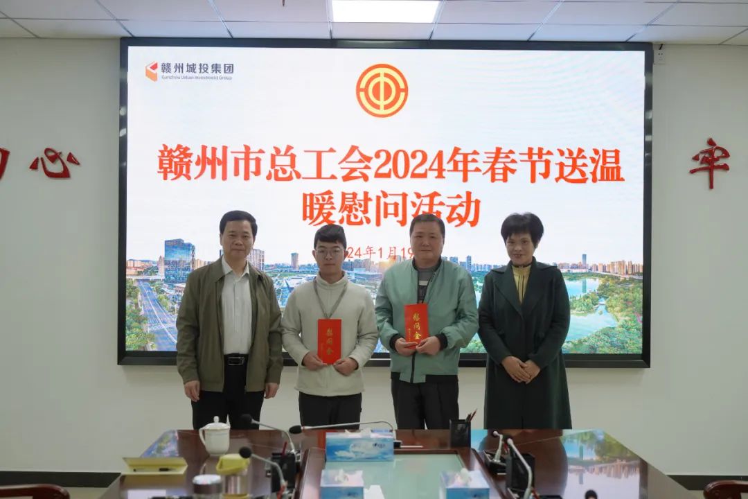 1月19日,赣州市总工会党组成员、副主席徐雅静一行到赣州城投集团开展春节送温暖慰问活动,走访慰问困难职工,并致以新春美好祝福。集团党委副书记王远平,集团党群工作部、文化宣传部负责人参加慰问。