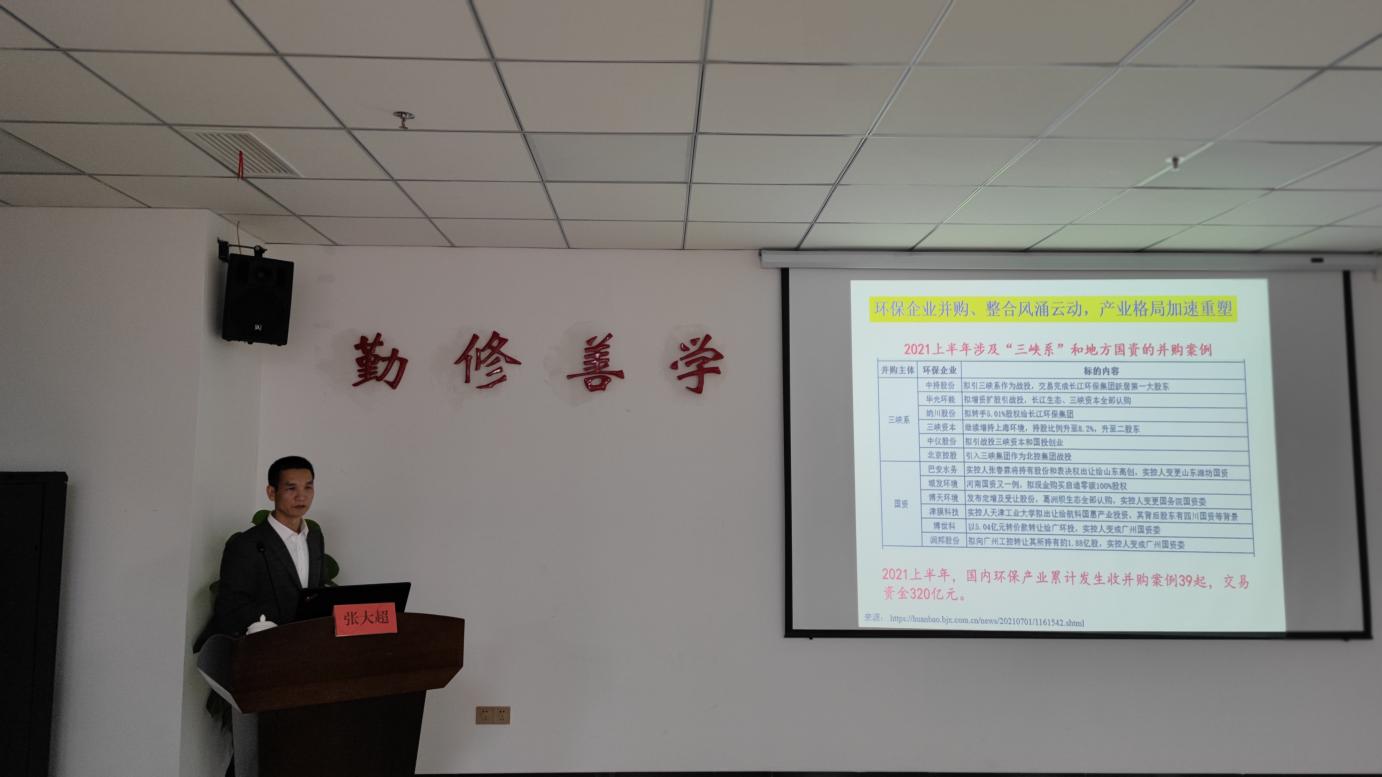 张教授详细阐述了目前国内环保产业发展态势,从环保产业方向、集聚区域、企业规模等方面指出了国有企业在环保产业领域的优势与劣势,为集团生态板块发展提出深耕精细化、系统化运营等建设性建议。期间,参训人员还与张教授就赣州市域农村生活污水处理工艺及市场发展状况进行了深入的探讨与交流。